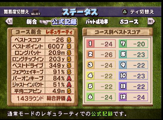 (2021年3月現在)の「NEWみんなのゴルフ」のガチ成績記録室があります。