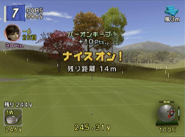 ↑ 低弾道と低いスピン能力はキャリーが伸びずグリーン手前に落ちたり、障害物に邪魔されたり致命傷も多い。常にSBSがないと攻略は厳しい