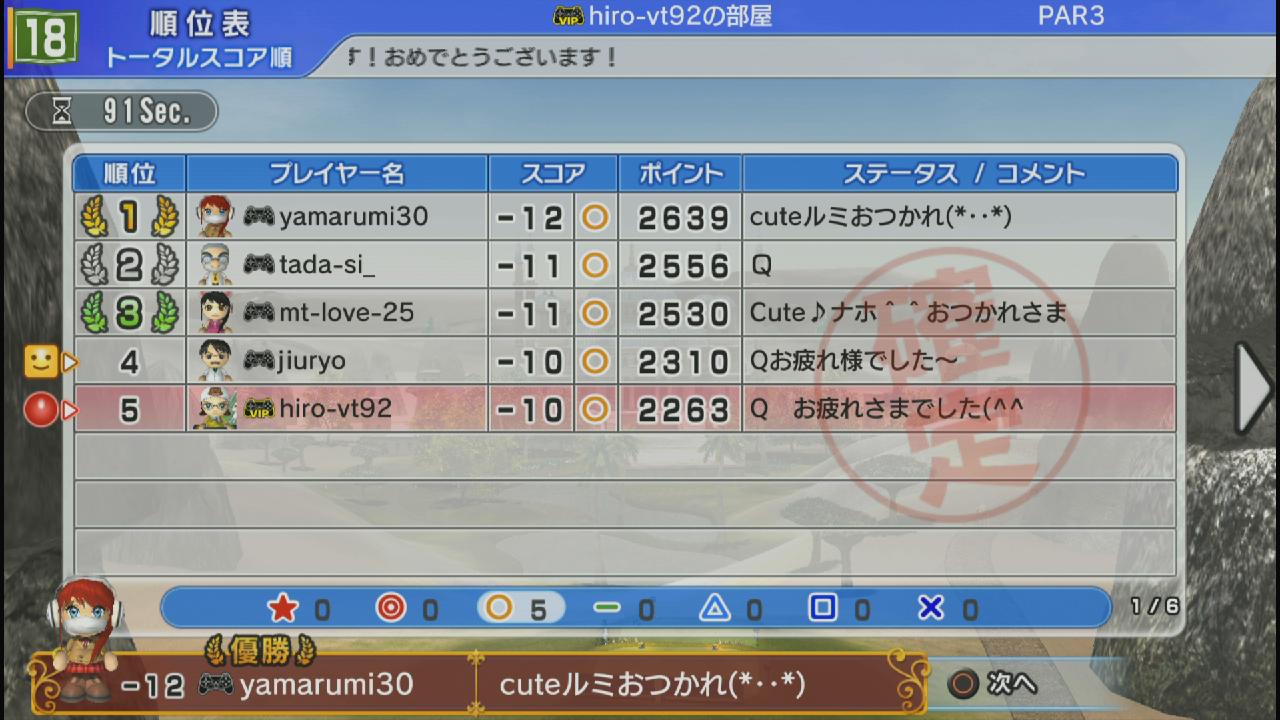 尚、序盤こそ荒れていた人もいましたが、後半は皆がバーディやらイーグルやらで