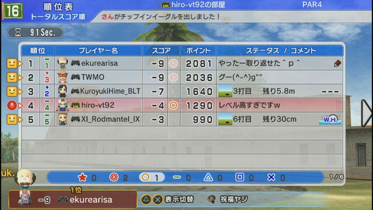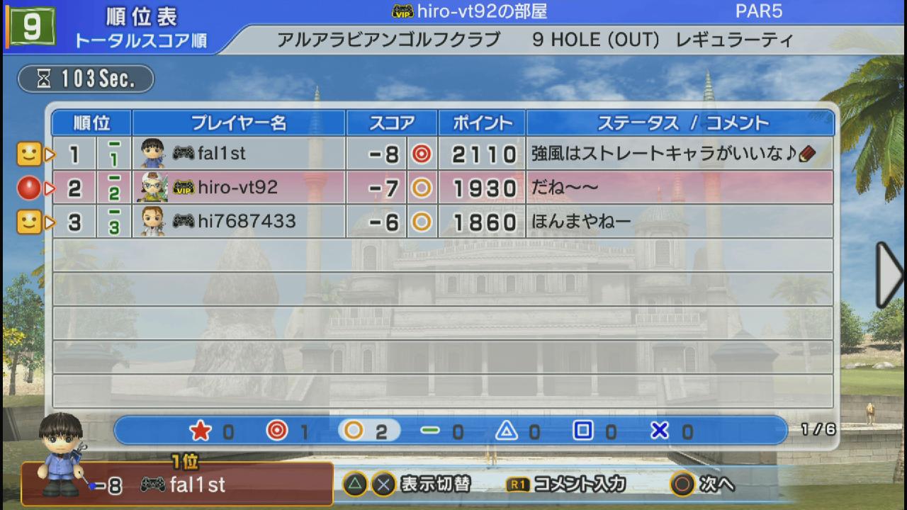 ひろうち92tトップ > みんゴル日誌 > みんゴル6 > 対戦部屋記録 2014年4月7日号