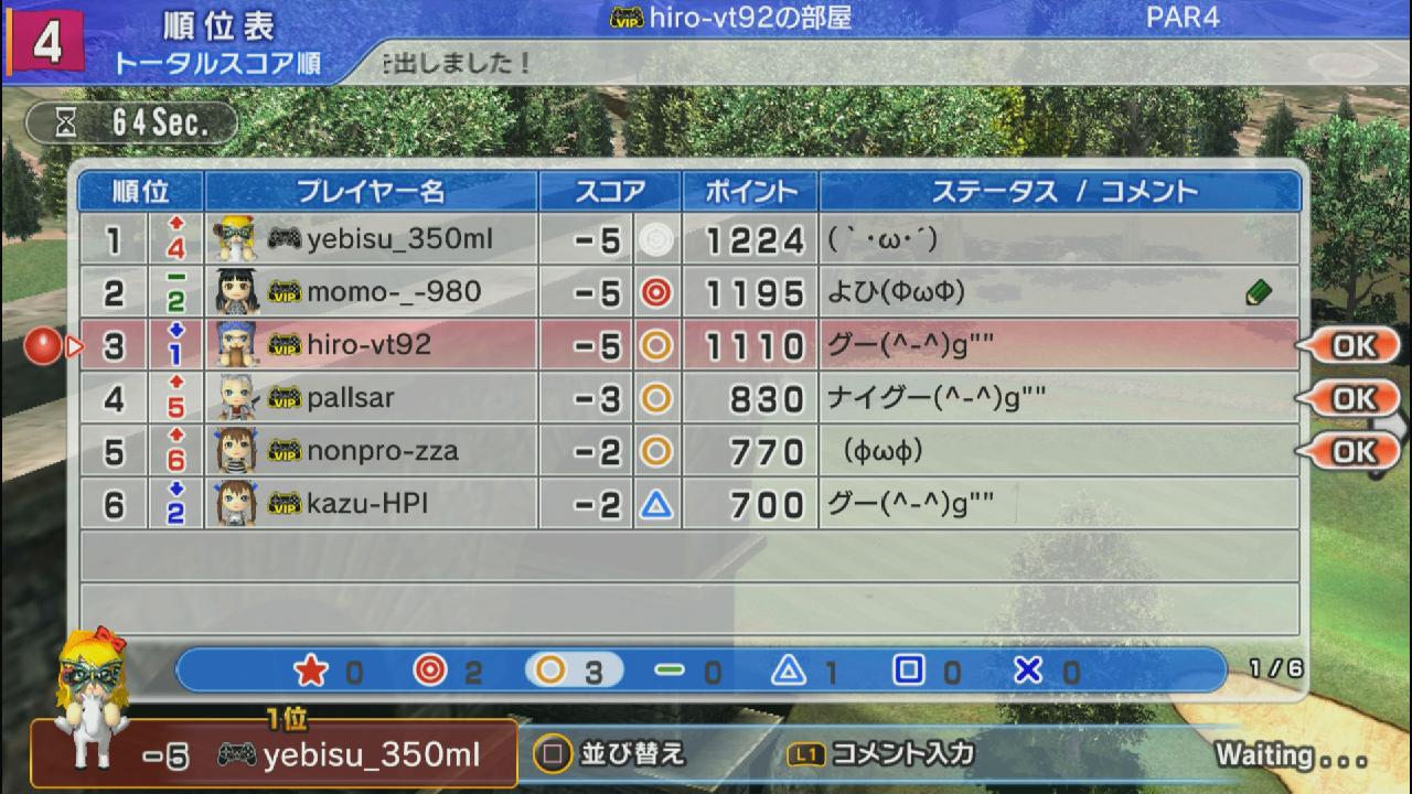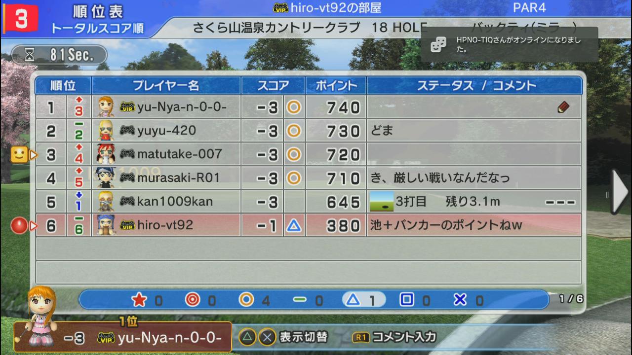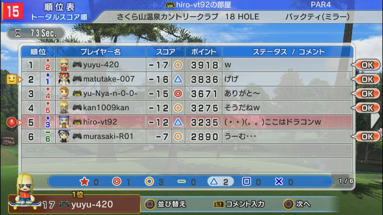 ひろうち92tトップ > みんゴル日誌 > みんゴル6 > 対戦部屋記録 2015年3月16日号