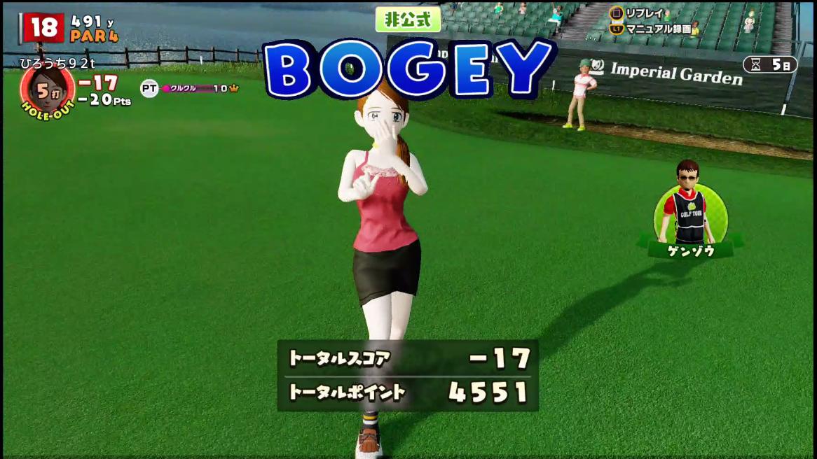 18番もバンカーを敬遠した結果、セカンドをオーバー気味に打つ羽目になり、