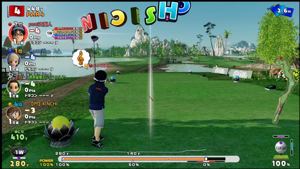 あと、水場に極力落とさないようにちょっと強めに打ってる感じです!