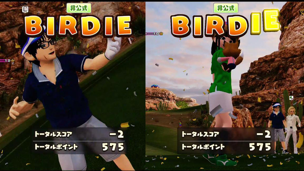 | ロージ | 日焼けした肌、メガネ、そして横縞模様の 服が特徴のみんゴルファー。 イベント好きでいろんなところを渡り歩く気まぐれレディ。 イベントは企画よりも見たり参加したりして マイペースに楽しんでいる。 今回の対戦部屋の名前もロージさんの買ってきたドーナツが原因で付けられた部屋名である。 |