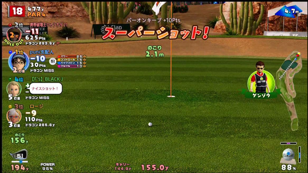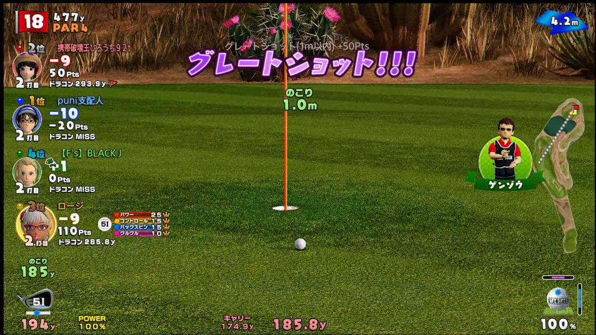 サボテンの前に落ちたりとかラフに行ったりとかで不安定だから