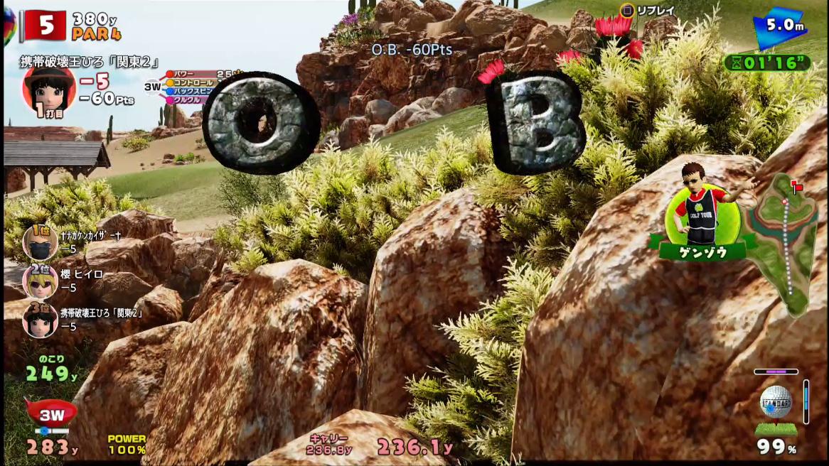 1オン狙いをしたとき強すぎたりキックしたりすると簡単にOBになるため、