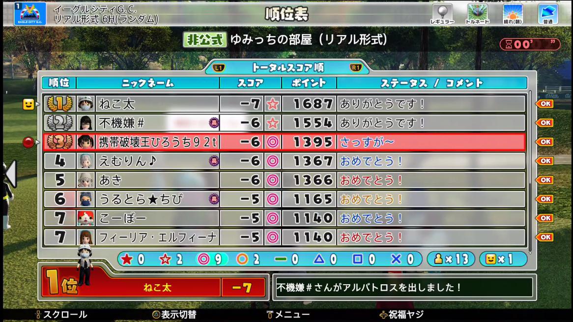 特にロングでも問題なし。アルバトロス達成は全部で2人でした^^