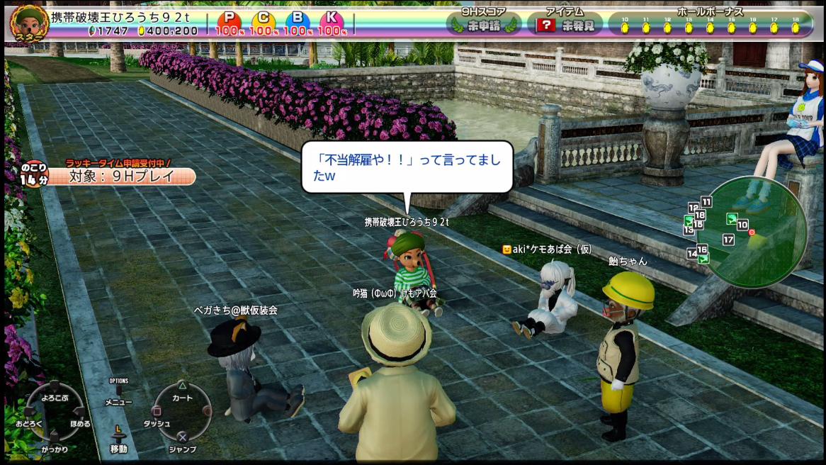 | ミュウ | みんゴルポータブルからのゲスト出演。 見習いの魔女っ娘。主にプレイヤーキャラのメイクを担当するが、 時々失敗して変な姿に変えることもある。 失敗した時は笑ってごまかすw 変な姿に変えられてしまうと、数日間元の姿に戻れず、 自然に戻るのを待つしかない…(罰ゲーム) |