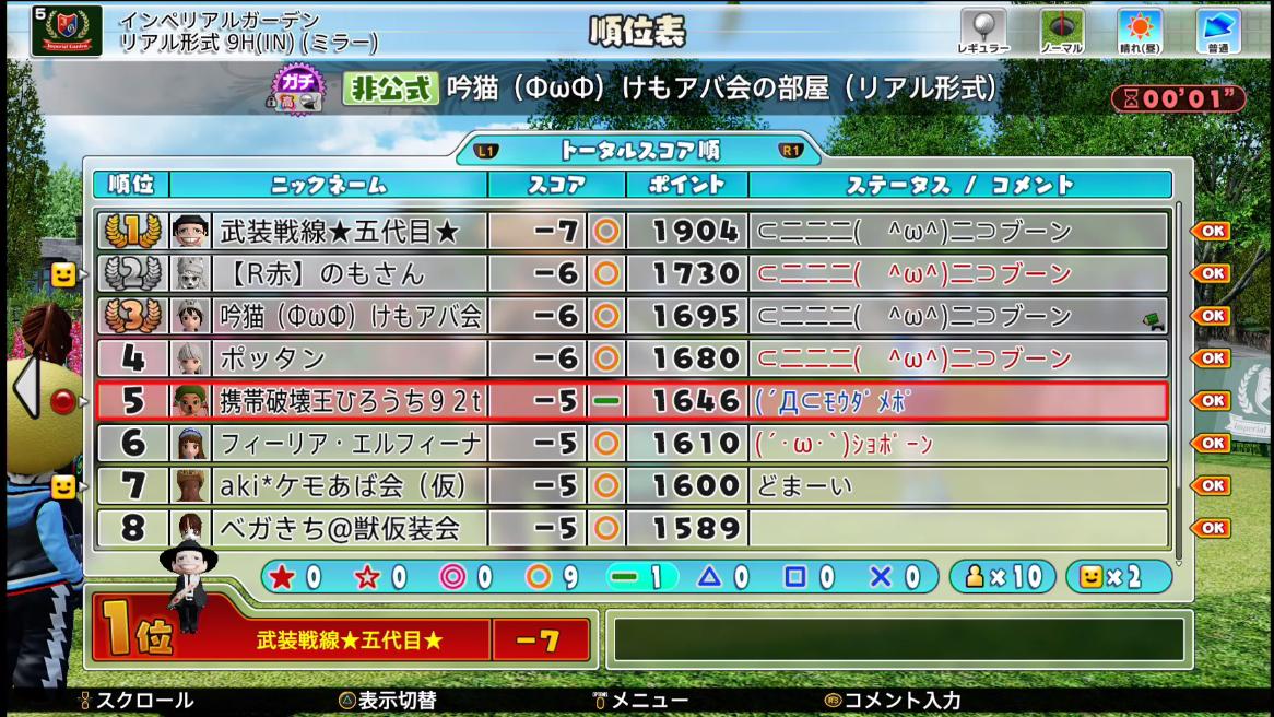 | 飴ちゃん | ケモアバ会の部員の一人。 なお、彼のホームにはかわいらしい猫アバがいるらしく、 ライバルの視線をくぎ付けにしてスコアを荒れさせる キャラがいるのだとか… |