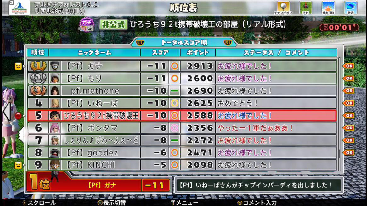 Pfメンツではしぇりんさんを除く人たち全員が−24を超えるスコアでフィニッシュに。