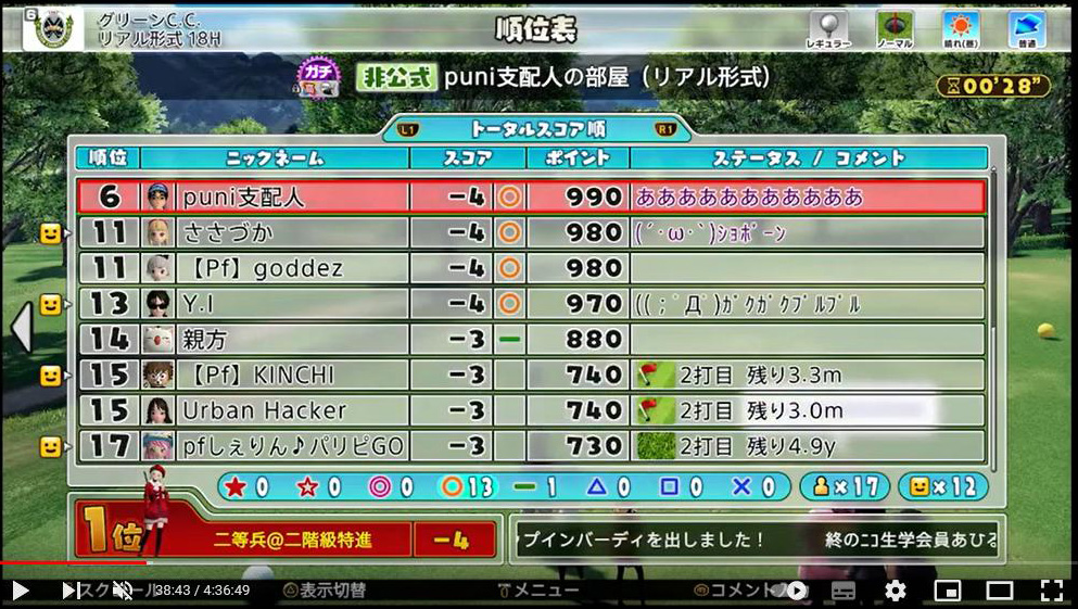まだ試合開始から3ホール目ですが、早くもぷに部屋で動きがあった模様…(;´・ω・)