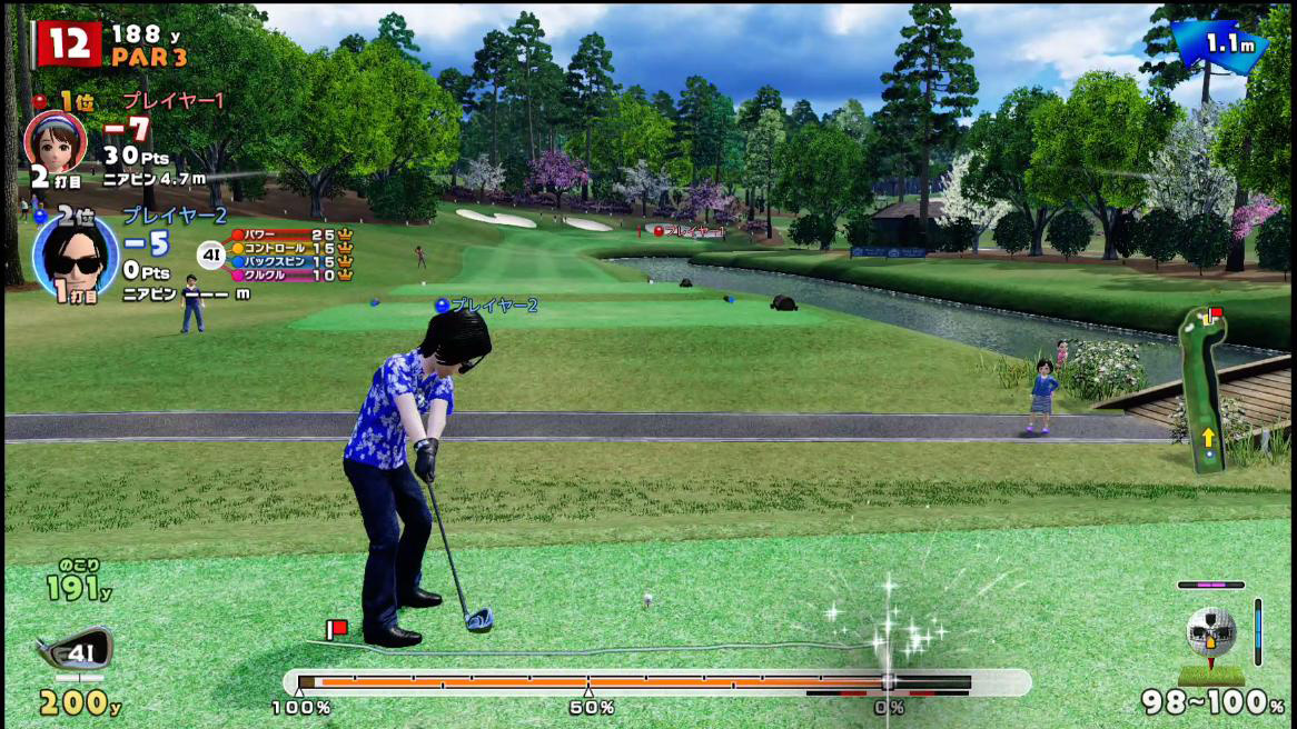 | サスケ | みんなのゴルフ1に登場するお笑いゴルファー。 元々は番組収録のためにゴルフをやったのがきっかけだったが、 予想外の才能を発揮し、一役有名になる… 以後、ゴルフに興味を強く示すようになり、暇さえあればゴルフに 出かけるようになった。みんゴルランド開設を知り、 単身やってきた |