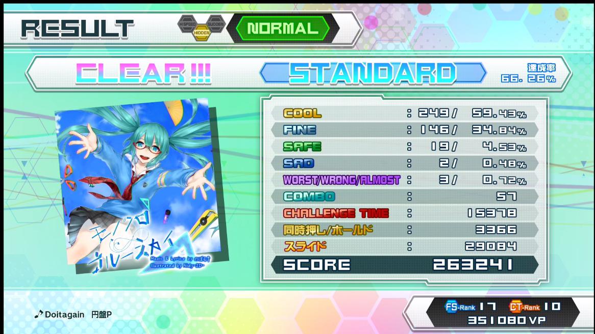 今回は少し難易度の高い曲が多かったので、HARDクリアに少し時間を取られた感あり…