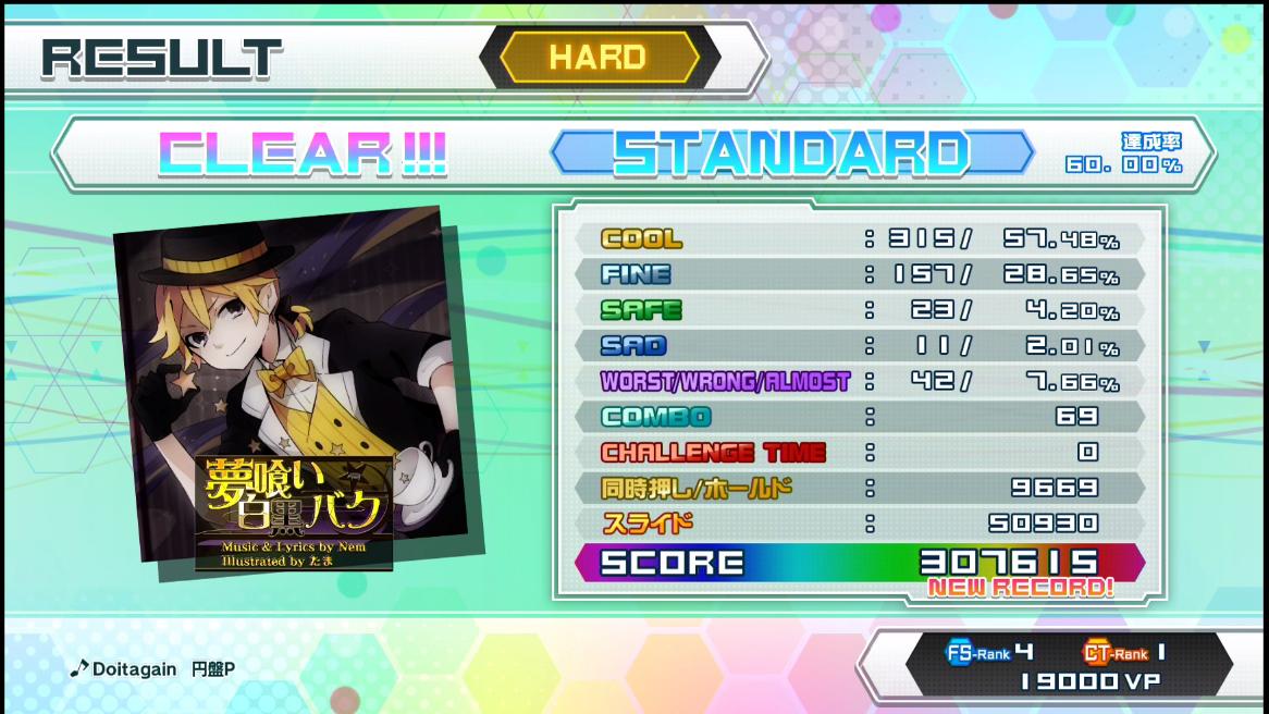 プレイ感覚として、素の挑戦でHARDまではできたので、とりあえずよほどBPMや