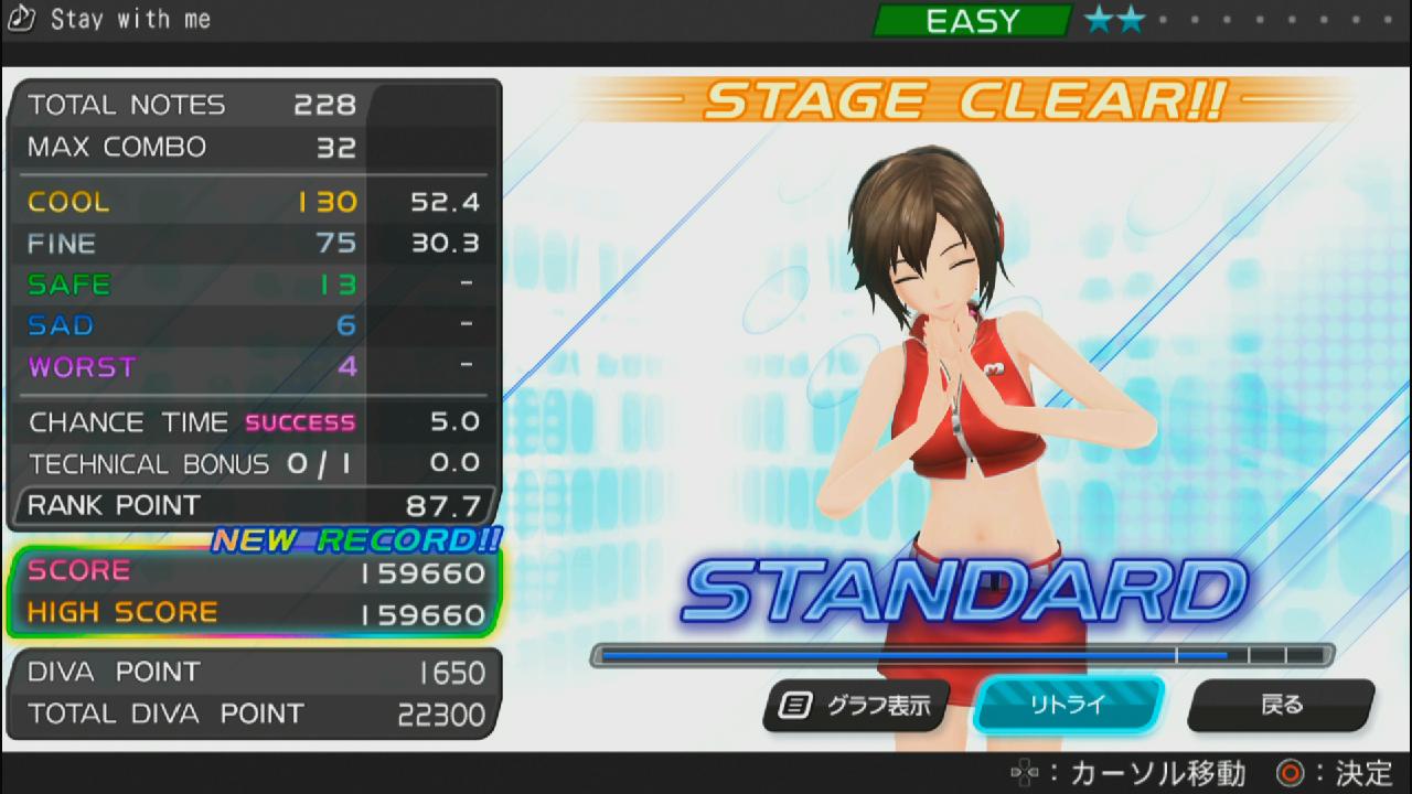 初音ミク ProjectDIVA-Fの操作にもだいぶ慣れ、順調に各楽曲ともクリアを