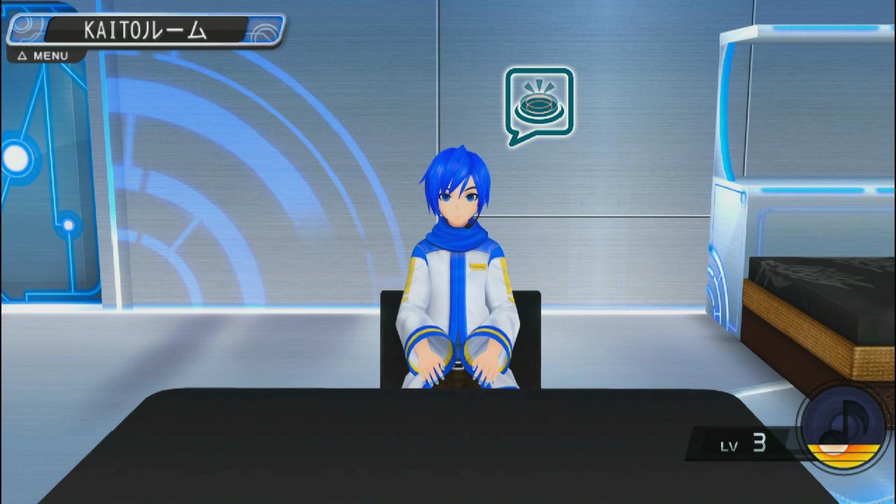 ↑ KAITOも基本的に落ち着き派。座ってPCをいじったり本を読んでいることが多い。また、指揮者の練習をしていることも多い