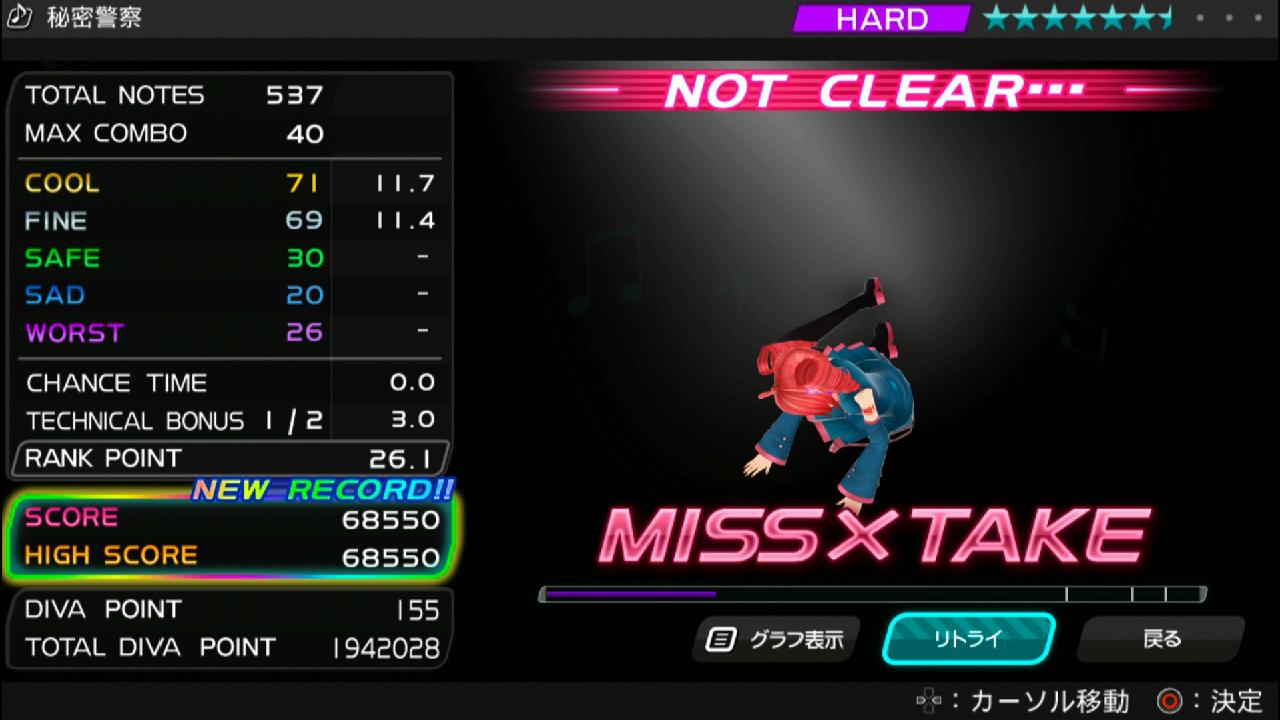 HARDをプレイしたのは今回が初めてですが、意外と初回から成績がそこそこ振るえた曲で、