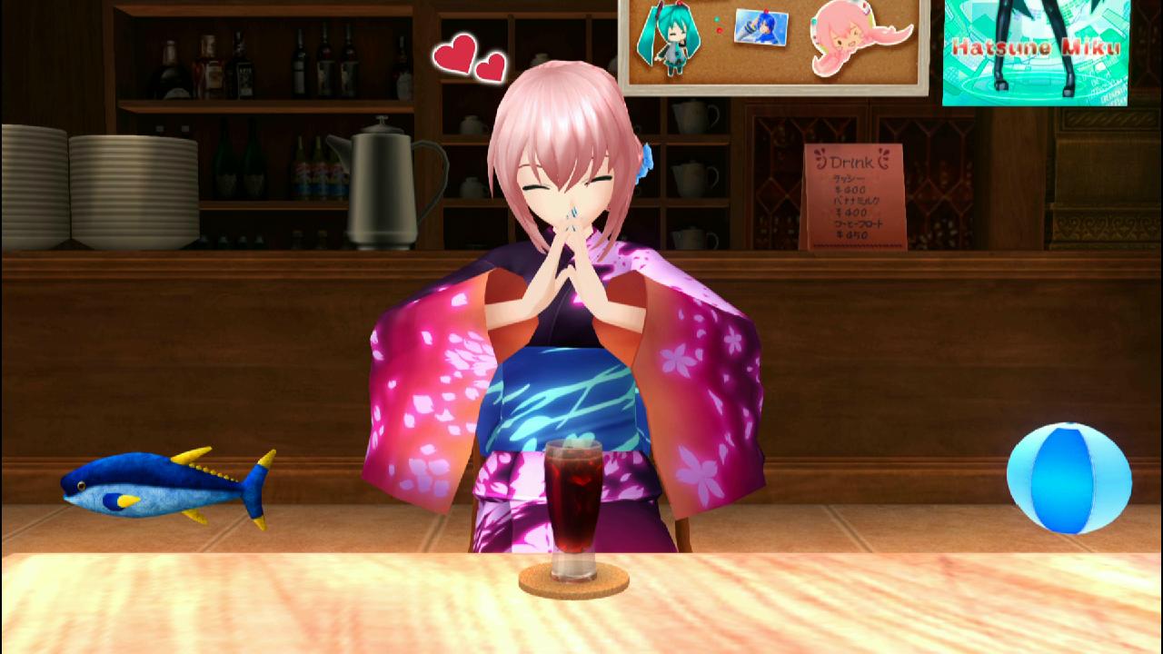↑ 涼しげなお気に入りのショットを1つ…浴衣姿のルカさんにアイスコーヒーをプレゼントしたところ