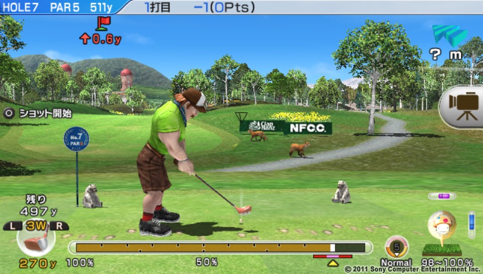 ↑ 怖いのが木との接触。4の頃よりも木が高くなっており(逆に弾道は低くなった)、前作よりもOBのリスクが高まった
