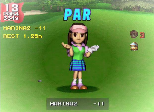 マリナは無理に狙った結果ラフに落ち、ロングパットでかろうじてバーディだったと
