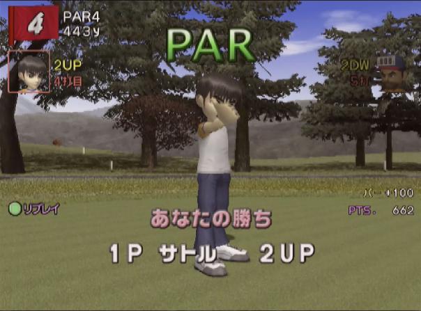 しかし、サエは3オンのバーディも逃してこのホールを落とし、ナナコ1UPに…