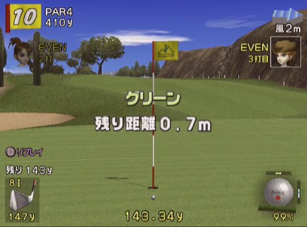 8番のロングホール…ナナコはパワーで谷越えをして2オン狙いで行くが…