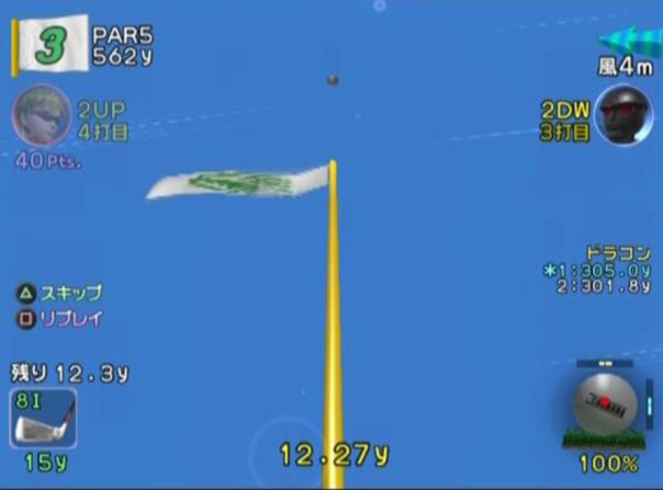 どうもCOMは川を渡す時中洲のフェアウェイの左側をターゲットに狙うようですね…