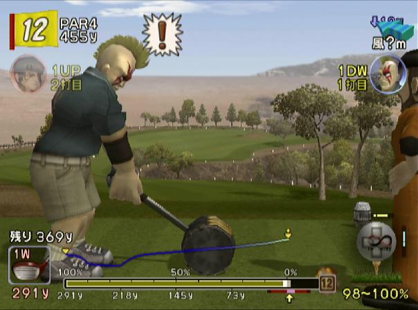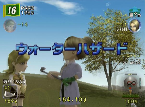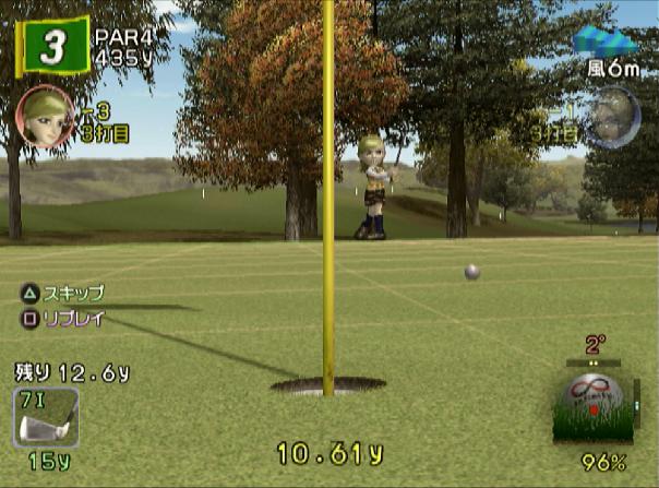 先にニーナがショットを打つが、結果は風に流されグリーン淵でバウンドして
