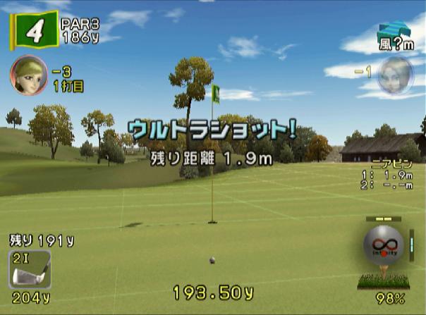 するとチップインしやすいと思うわ。100%のときはピンに当てて沈めるように