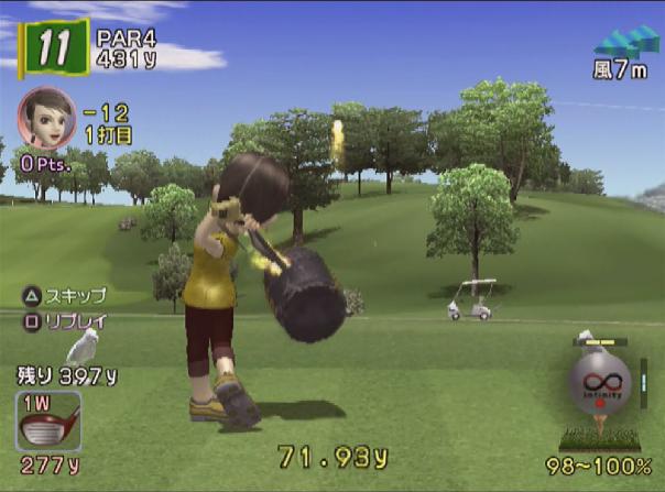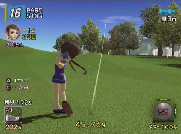 リンの場合、ティーショットはパワーを使わずにフルショットくらいが丁度良い飛距離…
