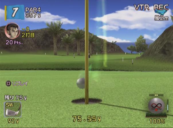 今回は2打とも無事にショットには成功して2オンのベタピンに成功!
