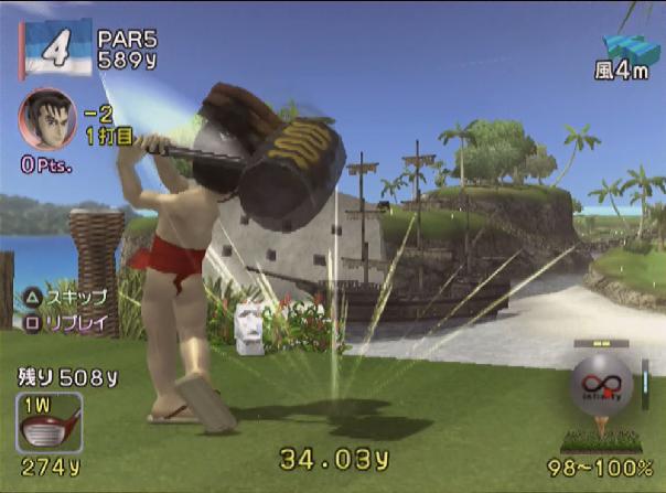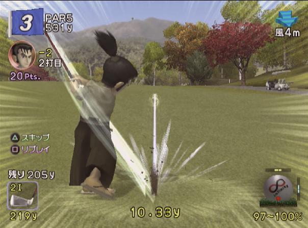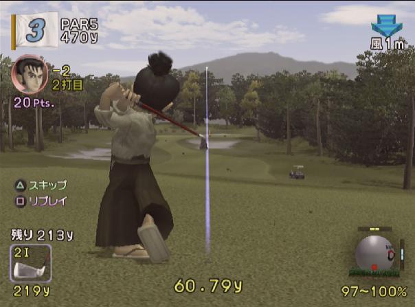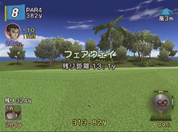 飛びすぎを懸念し、ティーショットはパワーを使わずにショットします。