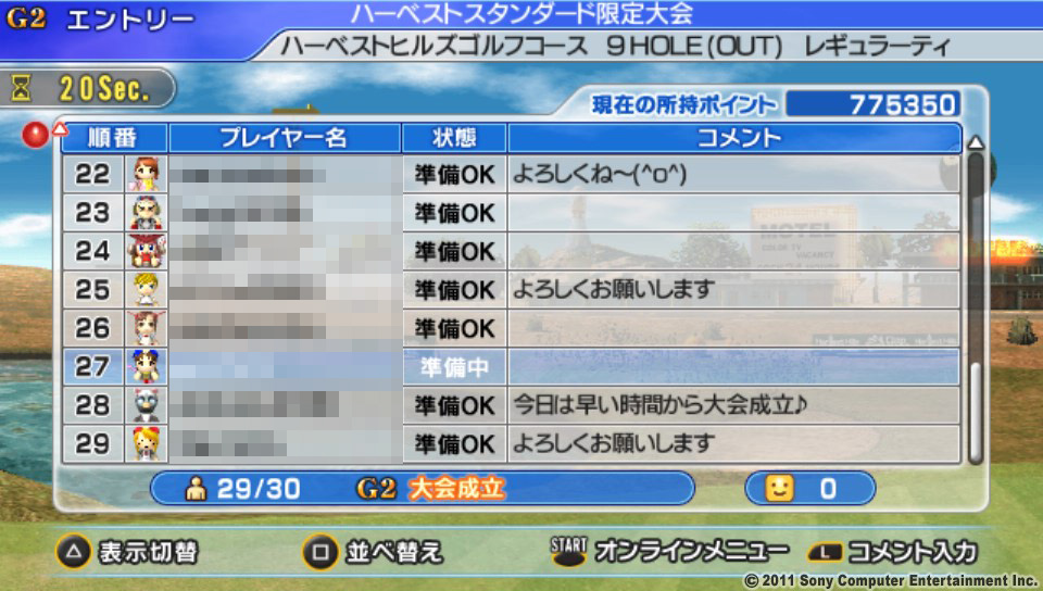 | ● 【G2】ハーベスト OUT ● |  |  | hiro-vt92 / マックス | スタスタ | | ○ | ◎ | − | − | ○ | ○ | ○ | − | ○ | −7 | | | | | | | | | | 7位/29人 |