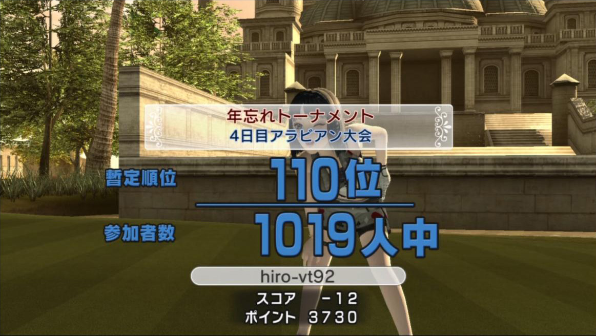 | ● 【全国】アラビア(ミラー) 18H ● |  |  | hiro-vt92 / シャオリン | ビグタボ | | − | ○ | − | − | − | ○ | ○ | ○ | − | −12 | | ◎ | ○ | ○ | ○ | ○ | ○ | ○ | ○ | △ | 886位/10660人 |