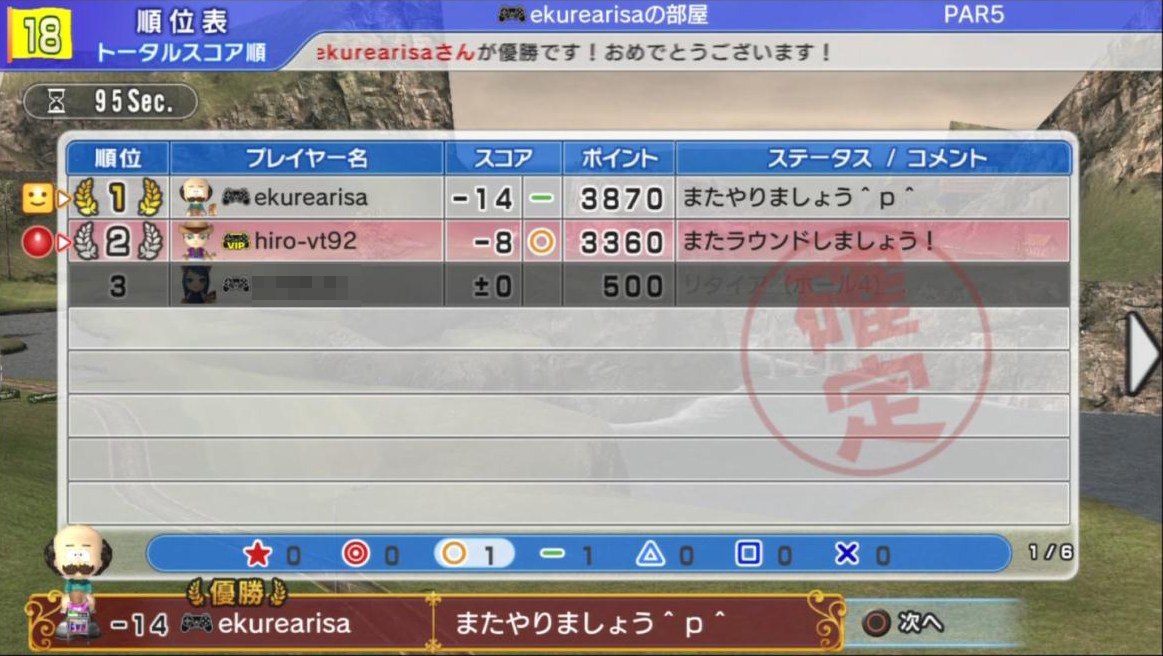 ひろうち92tトップ > みんゴル日誌 > みんゴル6 > 対戦部屋記録 2013年2月4日号