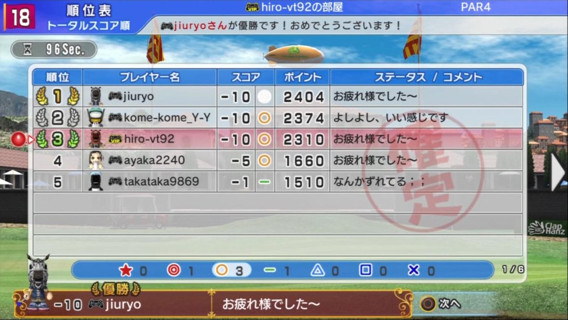ひろうち92tトップ > みんゴル日誌 > みんゴル6 > 対戦部屋記録 2013年2月18日号