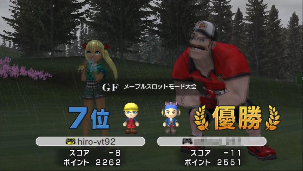 | ● 【G2】ハーベスト IN ● |  |  | hiro-vt92 / マックス | ドコドコ | | | | | | | | | | −9 | | ○ | ○ | ○ | ○ | ○ | ○ | ○ | ○ | ○ | 16位/30人 |