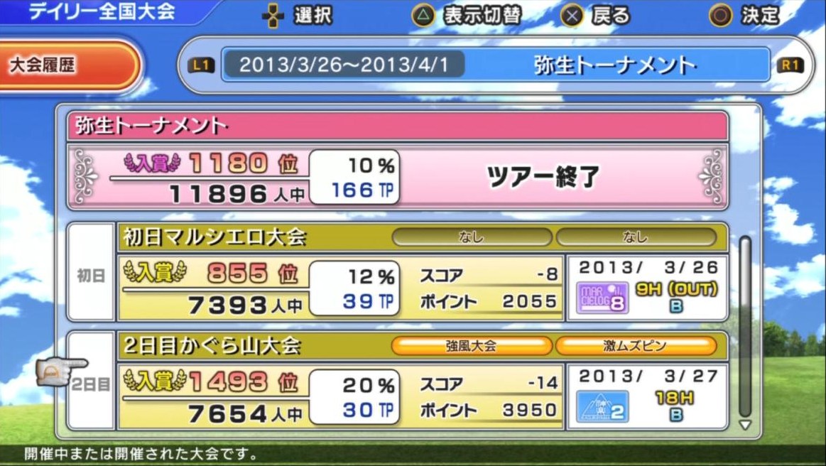 やったのはデイリー大会のみで、3日目はそれもすっかり忘れてました。