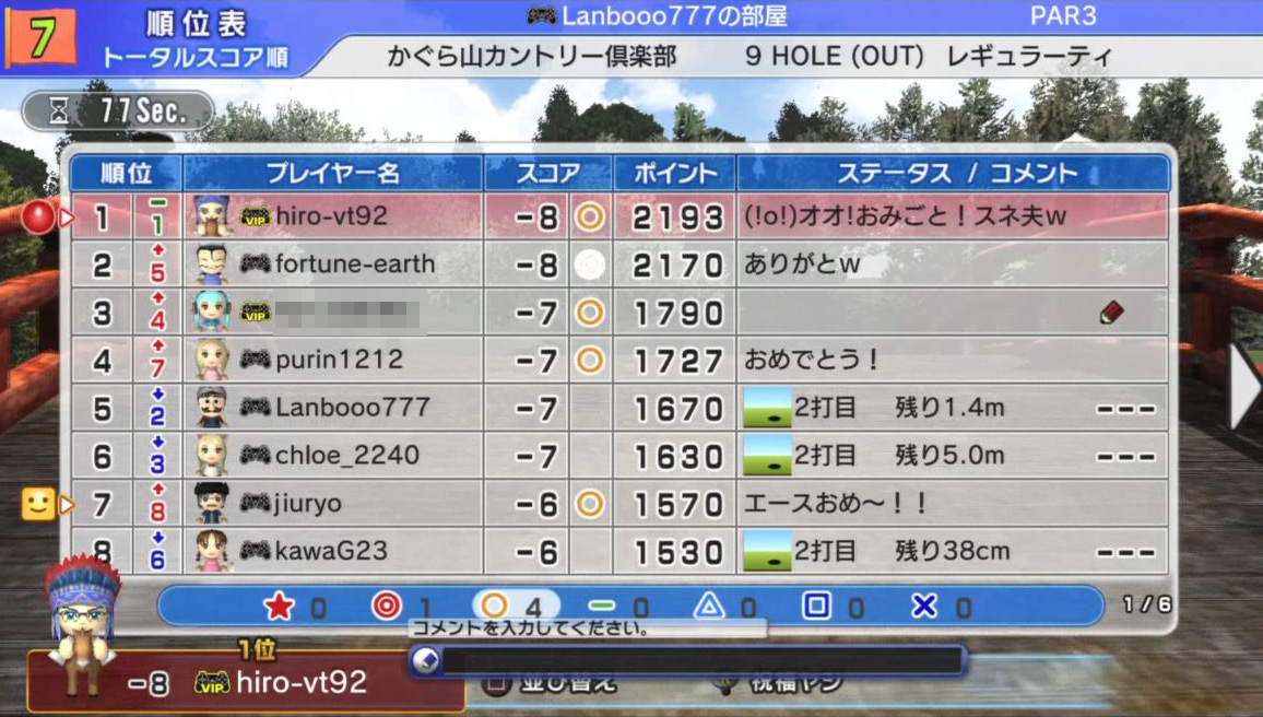 ほとんどラウンド中はかおりさんやseiさん、ひろうち92tがずっと喋っていて