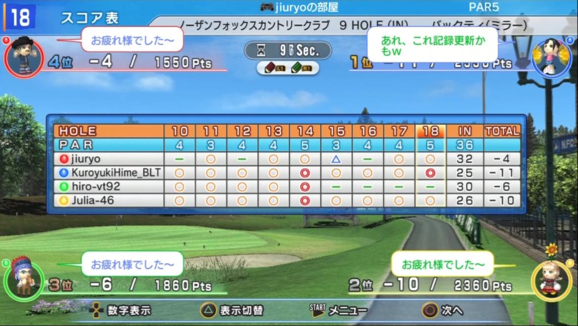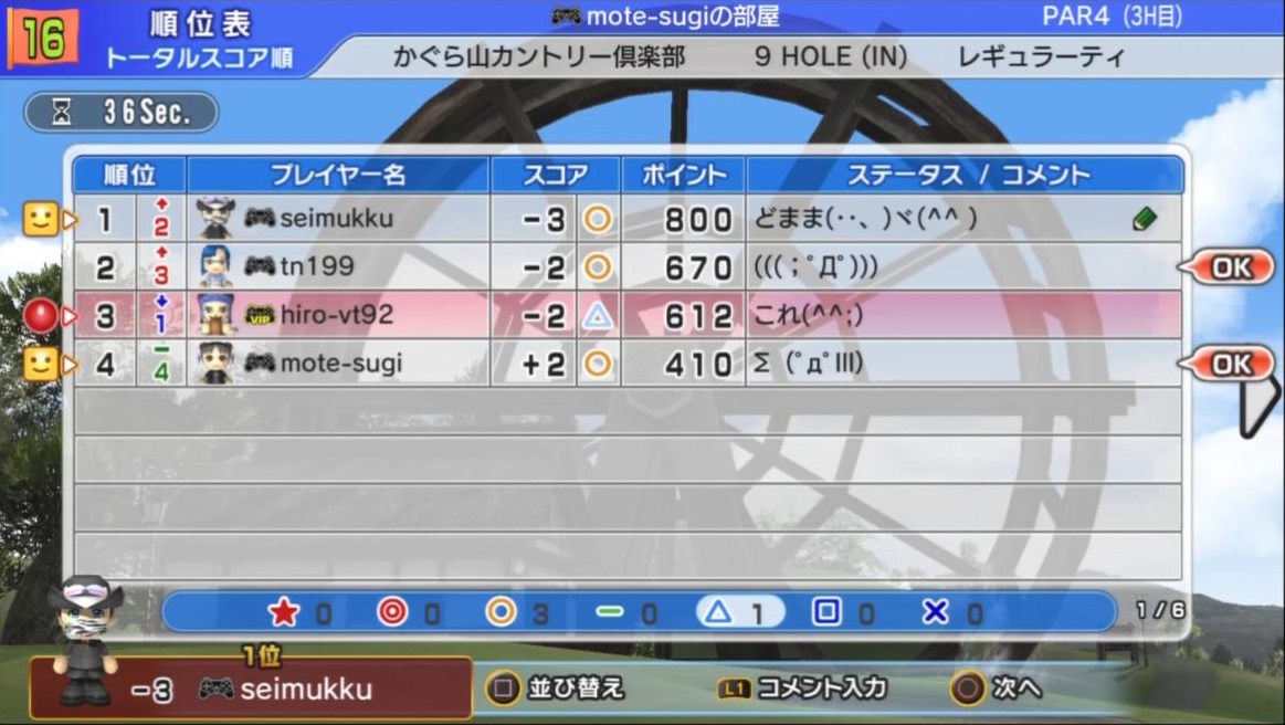 ひろうち92tトップ > みんゴル日誌 > みんゴル6 > 対戦部屋記録 2013年6月10日号