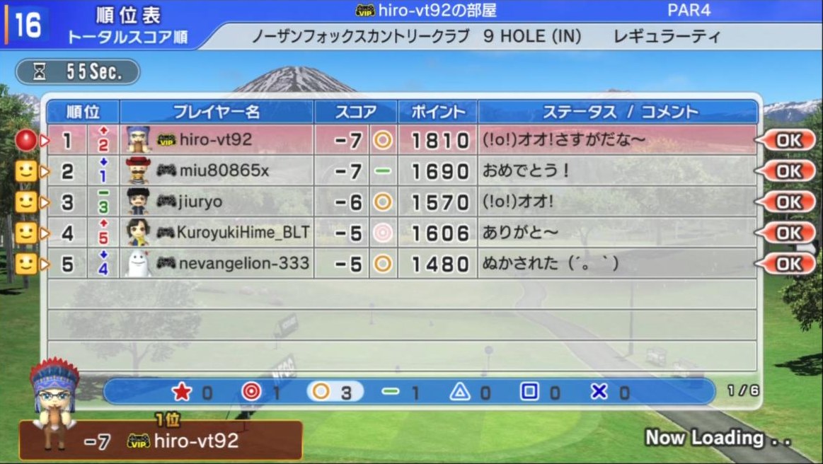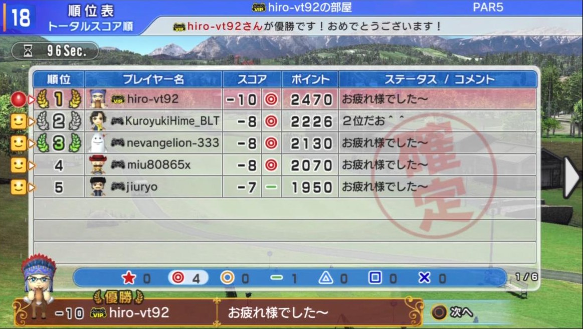 ひろうち92tトップ > みんゴル日誌 > みんゴル6 > 対戦部屋記録 2013年7月29日号