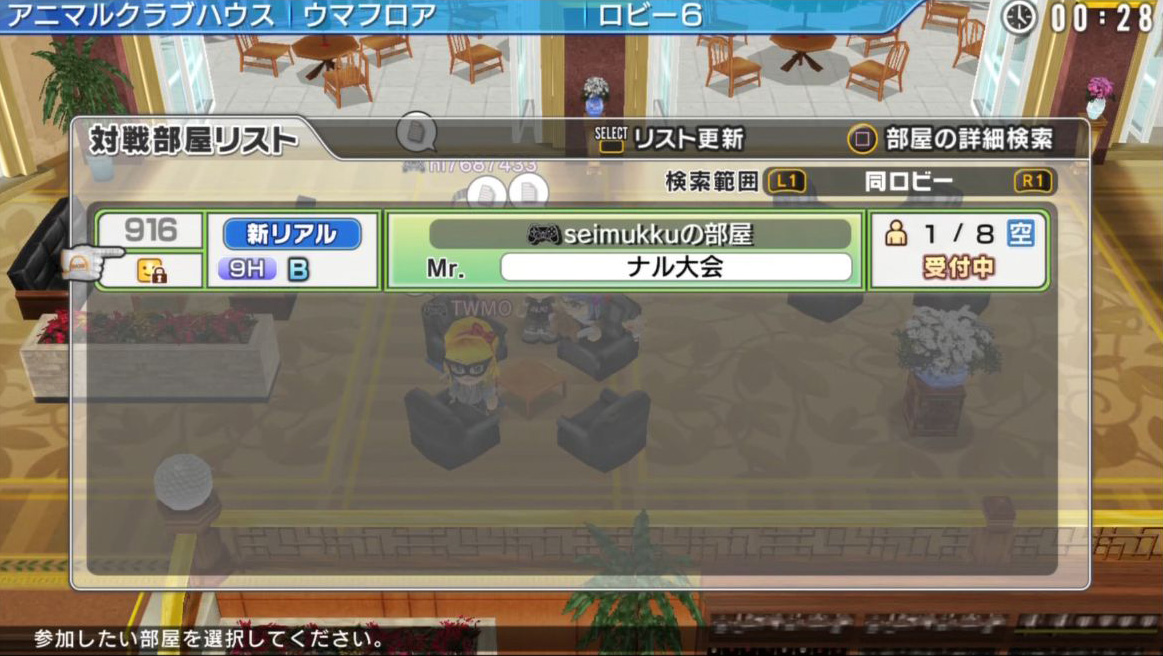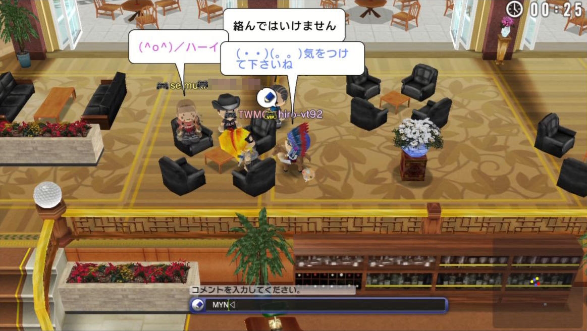 結構ロビーには入ったものの対戦部屋をせずにロビー内でチャットをしてた時間も
