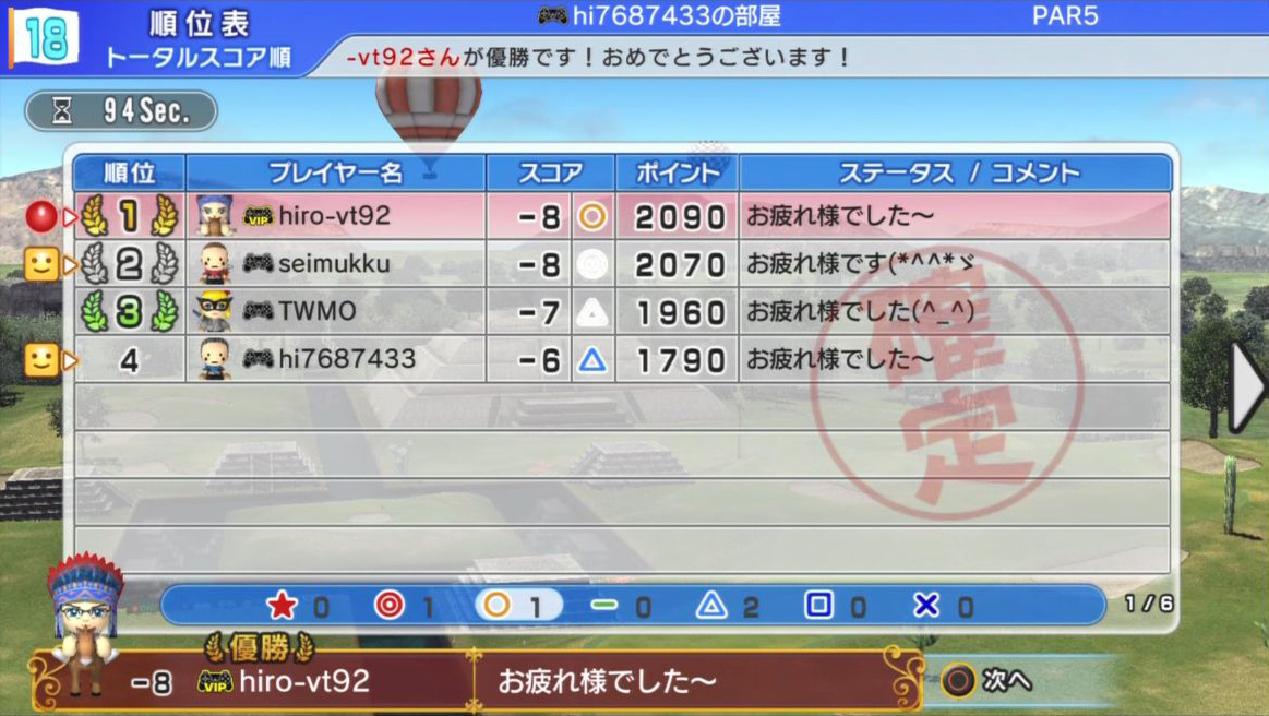 ちなみに初プレイだったフレンドさんは−1でフィニッシュ。