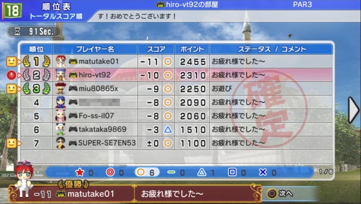 ひろうち92tトップ > みんゴル日誌 > みんゴル6 > 対戦部屋記録 2013年8月26日号