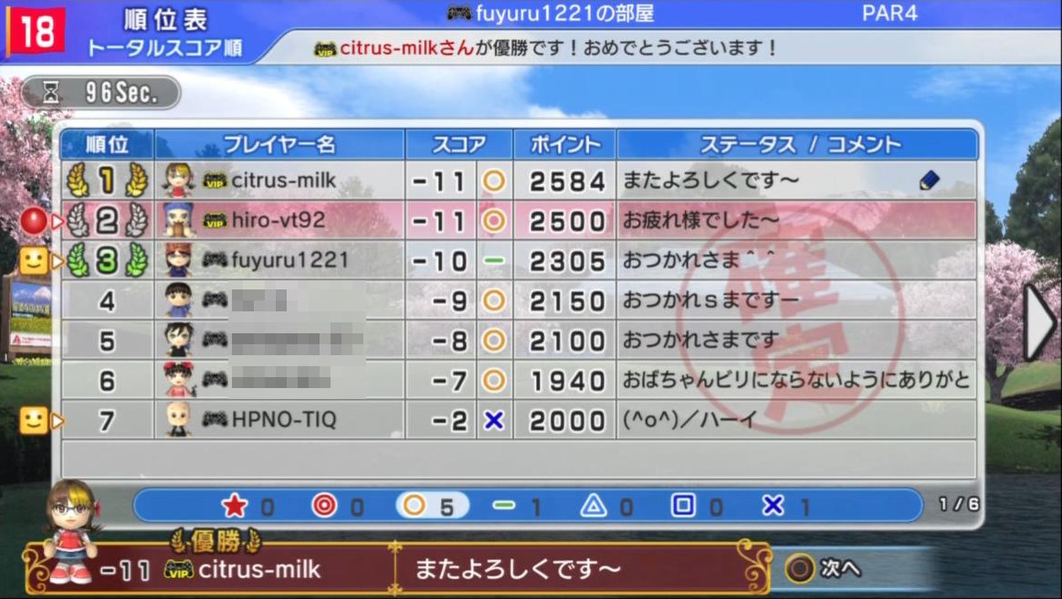 3番ではリョウさんがアルバトロスを決めて大きく躍進を遂げていました。