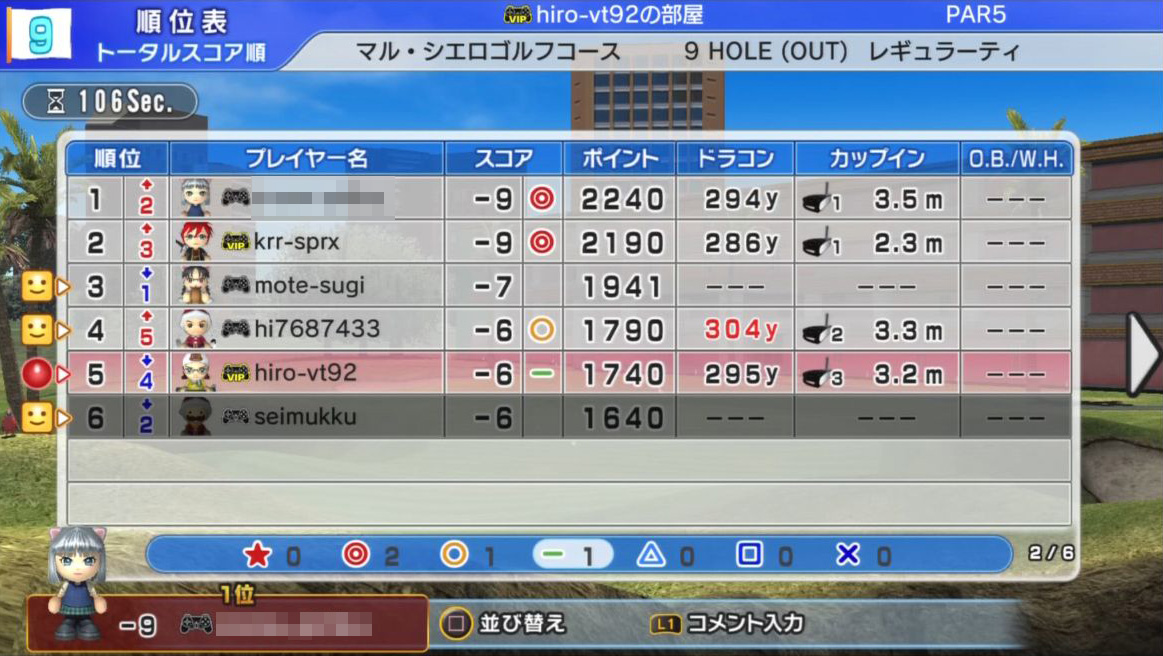 全員、バーディは厳しかったようで、BLTさん以外全滅でした。
