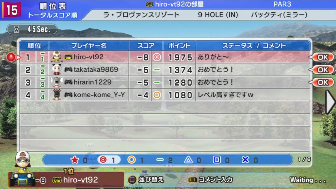 ただ、今回は3グループとも本当に僅差…9番ホールのスコア次第ではビリも