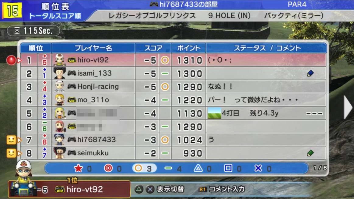 4番終了時点で全員−6〜7という成績(笑)