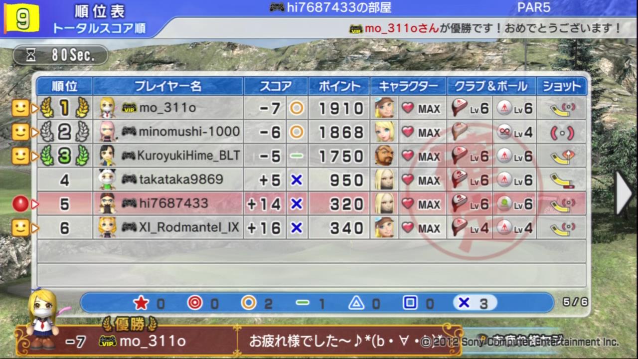 最近はPS3版のみんゴル6が中心となっており、なかなかVitaの方のプレイの機会がない…