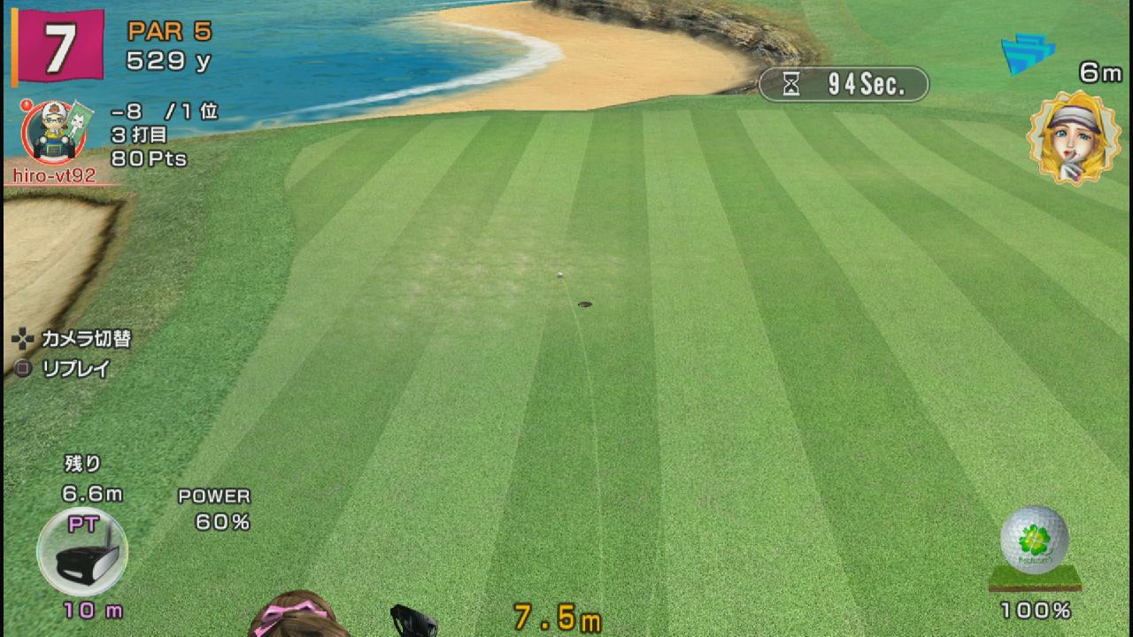 球ぶれからバーディやイーグルを決められず、そのまま追いつけないまま終了。